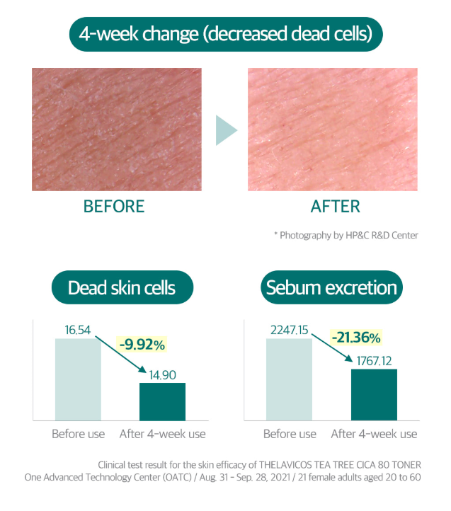 Κλινικά Αποτελέσματα 4 Εβδομάδων Thelavicos Tea Tree Cica 80 Toner